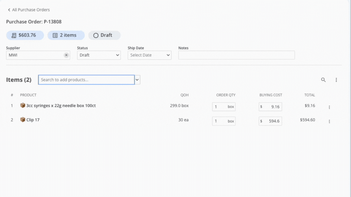 Stockroom purchase orders donβt have dedicated fields for shipping costs or taxes, but youβll still want to track those costs.
