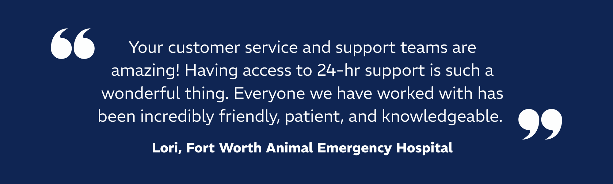 Like our implementation team, our support team is made up of veterinary professionals who’ve lived your day-to-day and know how high the stakes can be. No matter what comes up, help is always within reach.